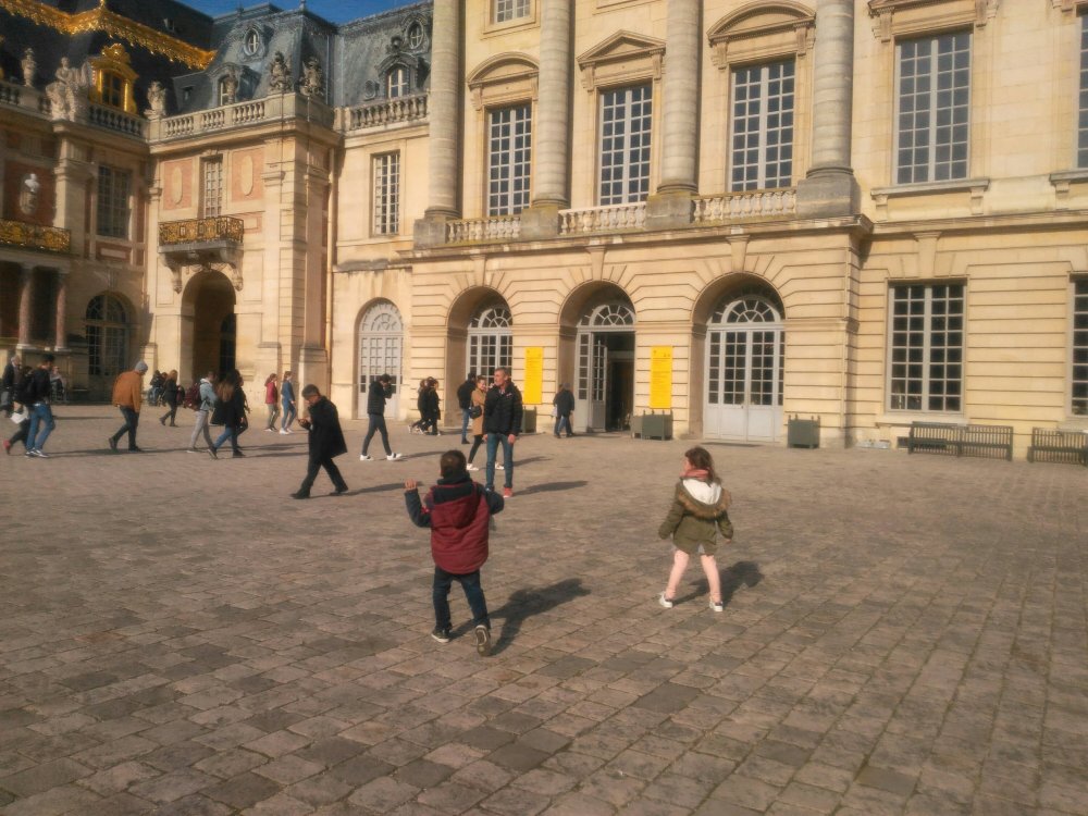 Après une bonne nuit de sommeil, nous sommes partis à la conquête de Versailles. Bon en vrai nous l’avons juste visité. Mais avec les loulous qui n’aiment pas marcher, c’est une conquête en soit.
